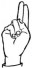 На ћирилици написано ЕВГЕНИЈЕ ЈОКСИМОВИЋ састоји се из 18 слова [?]. Исписано ћириличном једноручном азбуком за глувонеме: